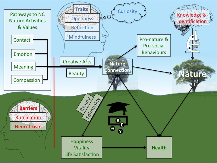 I use this blog to share nature connection research in a more straightforward manner than academic writing allows, but also to test and develop ideas. And one idea I’ve been developing over the past few days is a diagram to show what leads to a connection with nature, and why nature connection matters.
