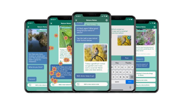 Nature Notes prompts people to simply write a sentence about the good things they notice in nature. The frequency of the prompts can be adjusted – daily, weekly, monthly or never. A photo and location can be added too. It’s a simple activity that can be done most places, from home or in the city – all that’s needed is a glimpse of every day nature, a tree or a bird, a flower emerging from a crack in the pavement. Once added users can scroll through their notes to take a look at their good things in nature. More widely, the Go Jauntly app allows users to discover or create their own walks – an ideal combination of walks in nature for physical health and connecting with nature for mental wellbeing.