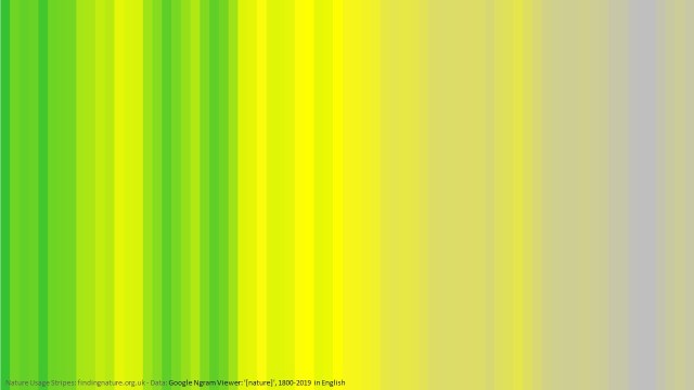 Nature Usage Stripes: findingnature.org.uk – Data: Google Ngram Viewer: ‘[nature]’, 1800-2019 in English