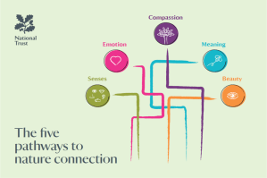 A sustainable future requires a transformational change in our relationship with nature. Large-scale social and cultural shifts are needed to meet the challenges we face in addressing the climate and wildlife emergencies. Nature connectedness captures that relationship and the principles can be applied at a wider scale across the public realm to change how people relate to the rest of the natural world. With the focus of many sustainability initiatives being on reduction and restriction, nature connection offers a positive vision of a vibrant and nature-rich world that helps people feel good and live meaningful lives.