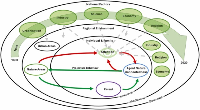 It’s the most complex work I’ve attempted and the culmination of a year using new approaches such as machine learning and agent-based modelling to study long-term trends and global differences in recent papers in Earth, Ambio, Sustainability Science and Biological Conservation. As such, the paper also offers a theoretical synthesis of the emerging macro-nature connectedness field, shifting the agenda from individuals and green space to strategic interventions that address the forces driving long-term disconnection and the realities of local places. Put simply, nature connection isn’t viewed as an individual trait, but a system shaped over centuries—this latest research starts to reveal how.